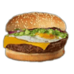 The Royal Cheese Burger is a timeless classic, featuring a juicy beef patty topped with rich melted cheddar. Fresh lettuce, tomato, and pickles add crunch and zest. Served on a soft sesame bun, it’s the perfect choice